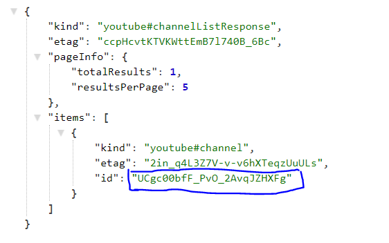 The result will be like picture above, from that result we know that channel with username boyceavenue have Channel ID = UCgc00bfF_PvO_2AvqJZHXFg